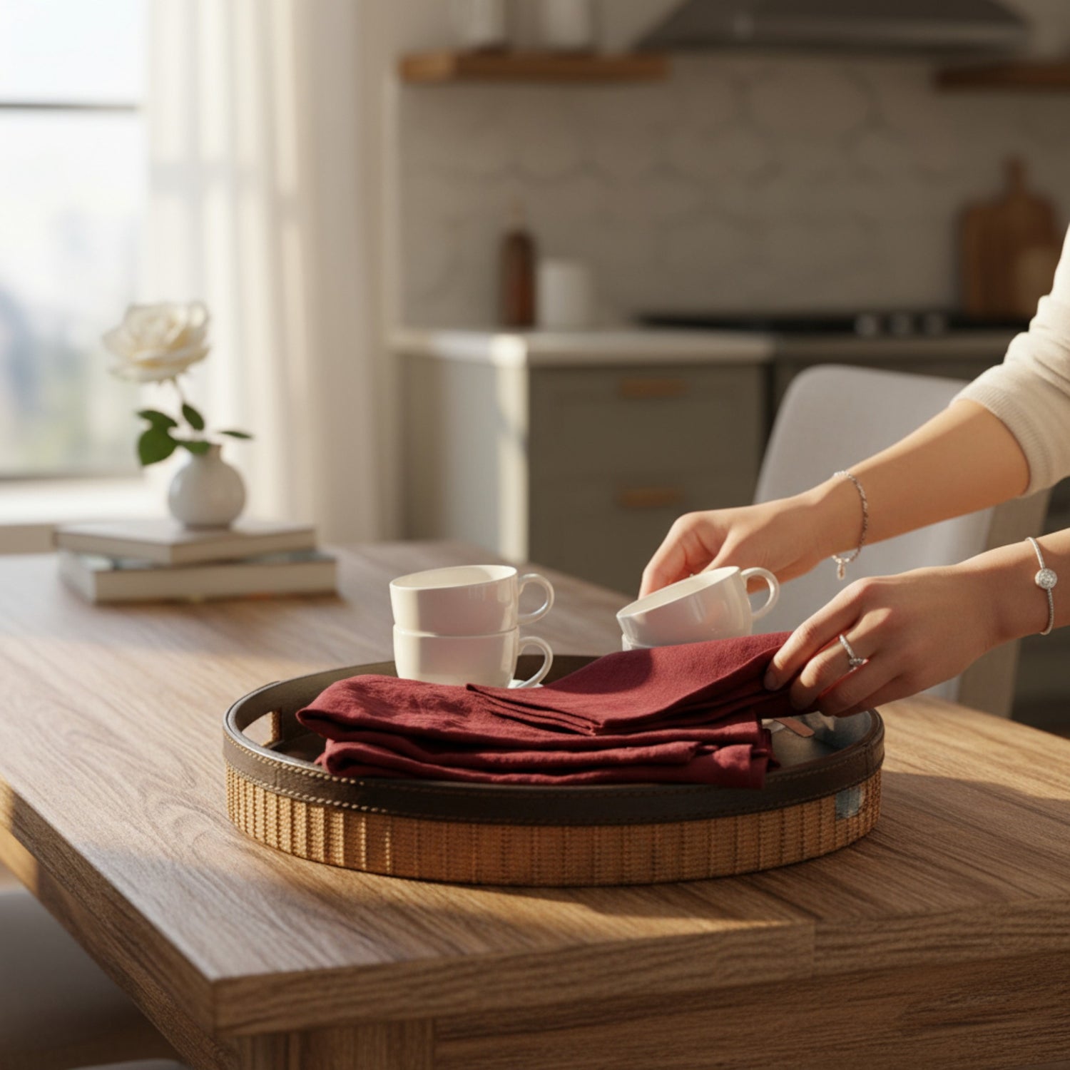 Elevate your table with these gorgeous burgundy linen napkins, crafted from premium French flax that gets softer with every wash. Each napkin measures a generous 45cm x 45cm, finished with perfectly mitered corners for that polished, restaurant-quality look. Naturally absorbent and breathable, they're ideal for everyday dining or special occasions. This set of four brings warmth and sophistication to your table while being wonderfully practical—because who doesn't love linen that actually gets better with age?