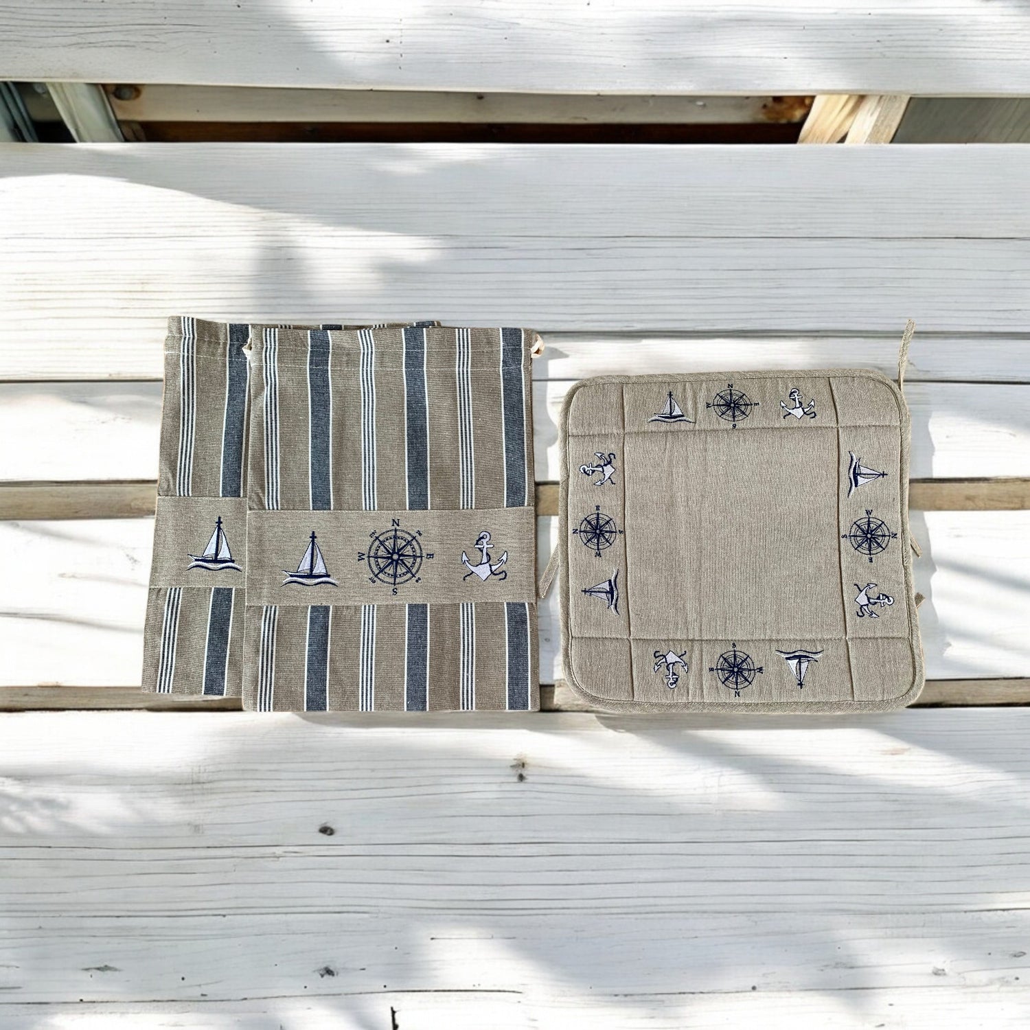 Bring a splash of seaside charm to your kitchen with this Cotton Nautical Embroidered Bread Set. Crafted from cotton, it features delightful nautical embroidery that adds a fun, coastal vibe to your meal times. Perfect for storing bread while brightening up your table, this set turns everyday baking into a playful ocean adventure. Sail into style with every slice!