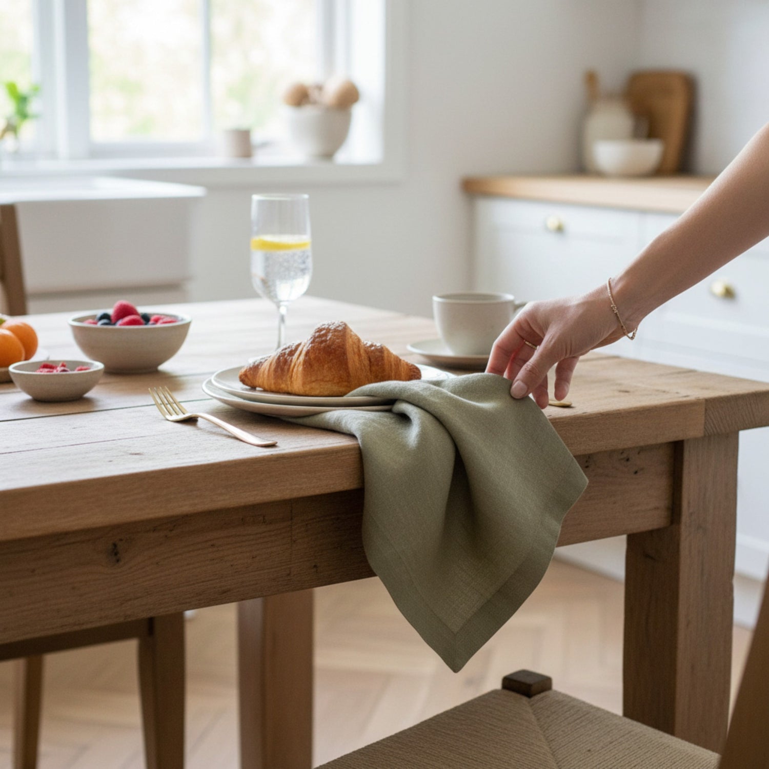 Elevate your table with these charming Olive Green linen napkins, crafted from french flax for that effortlessly elegant look. Each napkin in this set of four measures a generous 50cm x 50cm, perfect for adding a pop of natural colour to any meal. The stonewashed finish gives them a wonderfully soft, lived-in texture that only gets better with every wash. Whether you're hosting a dinner party or enjoying a casual weeknight feast, these versatile napkins bring a touch of understated sophistication to your table. Durable, sustainable, and undeniably stylish—your guests will be impressed, and your table will thank you.